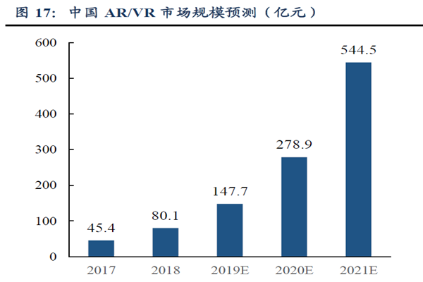 根据数据显示,2017-2021年中国AR、VR市场规模从45.4亿元增长到了544.5亿元,同比增长了95.2%。与此同时,可穿戴设备市场在逐渐扩张,预计到2022年中国可穿戴设备市场规模将达到946.2亿元,2017-2022年复合增长率为35.31%。