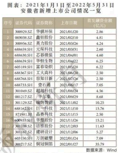 下面是详细数据及安徽省上市公司名单