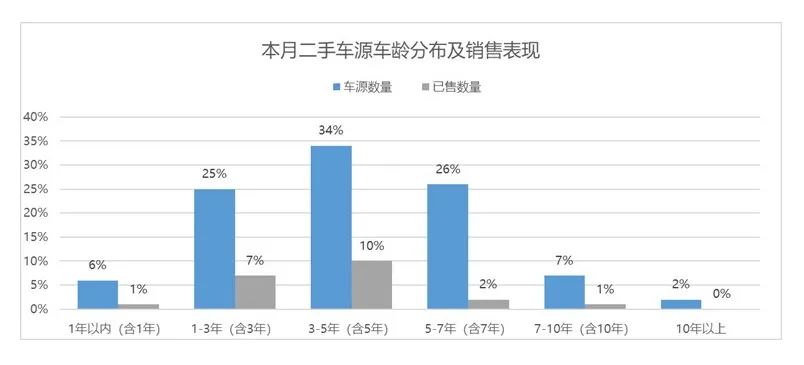使用年限在3年内车型占比为30.2%,环比下降了1.3个百分点,较去年同期增加了8.3个百分点;